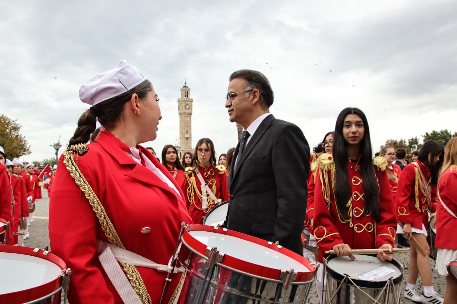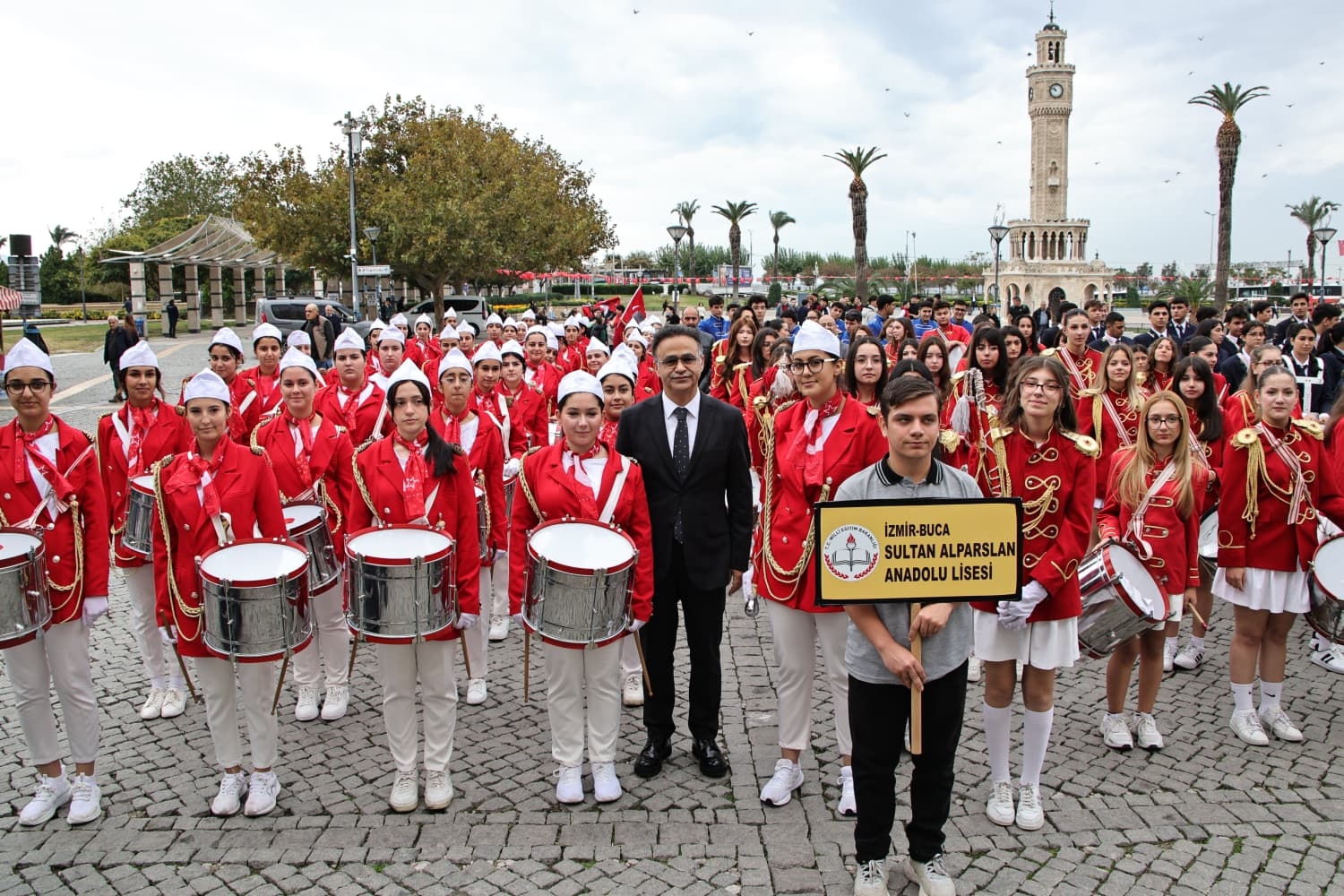 Bornova Fatih Sultan Mehmet İlkokulu, Karabağlar Limontepe Seniye Hasan Saray İlkokulu, Buca Burhan Özfatura İlkokulu, Konak Şehit İdarî Ateşe Çağlar Yücel Meslekî ve Teknik Anadolu Lisesi, Buca Sultan Alparslan Anadolu Lisesi, Karabağlar Nene Hatun Kız Meslekî ve Teknik Anadolu Lisesi ile Bayraklı Mustafa Kemal Anadolu Lisesi öğlencilerinden oluşan "Bando Takımları", İzmir İl Millî Eğitim Müdürlüğü binasından başlayarak Konak Atatürk Meydanı'na kadar coşkulu bir yürüyüş gerçekleştirdi.