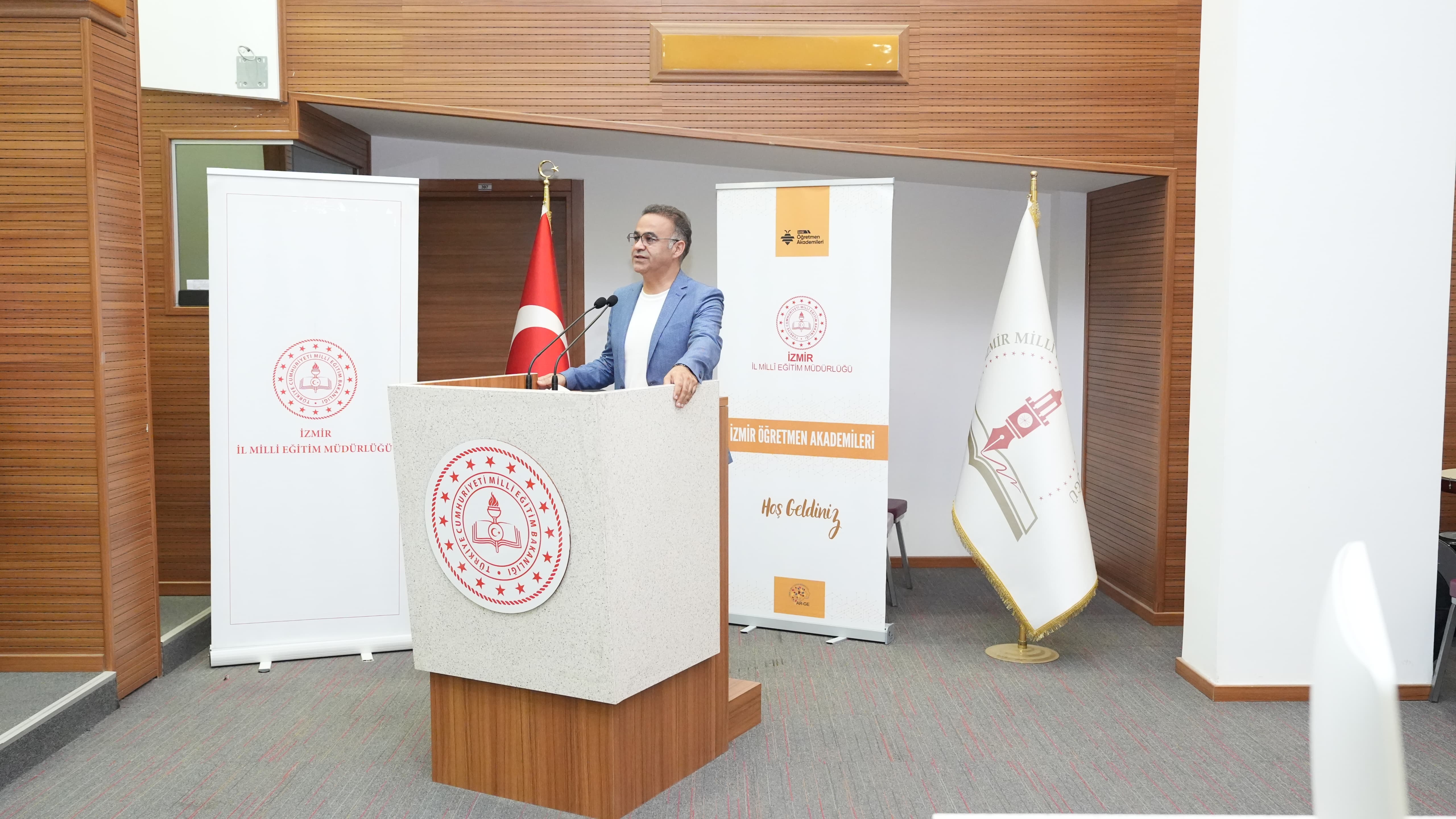 İzmir İl Millî Eğitim Müdürü Dr. Ömer Yahşi, konuşmasında şunları kaydetti: "Öğretmen Akademileri, öğretmenlerin meslekî gelişiminin yanında duygusal yönden de gelişimine katkı sunuyor. Burada edinilen deneyimler, bilgi paylaşımından öte, öğretmenler arasında güçlü bir birliktelik ve dayanışma ruhu oluşturuyor. Eğitimciler olarak biz, yalnızca bilgiyi aktaran değil, aynı zamanda kalplere dokunan rehberler olmalıyız. Bu noktada kendimizi geliştirme ve dönüştürme yolculuğumuz asla sona ermemeli." Yahşi, öğretmenlerin sınıfa girdiklerinde çocuklara yalnızca müfredatın içeriğini değil; şiirin zarafetini, türkünün sıcaklığını ve kültürümüzün zenginliğini de aktarması gerektiğinin altını çizdi. Günümüzde yapay zekânın ve dijitalleşmenin hızla ilerlediği bir dünyada, "Bizler zevk-i selim, gönlü zengin ve dili güzel nesiller yetiştirmek için gayret gösteriyoruz." diyen Yahşi, "Biliyoruz ki, kalbe dokunmayan bilgi kalıcı olmaz. Bu önemli sorumluluk öğretmenlerimize düşüyor. Öğrencilerimize bilgiyi verirken onların duygularına da ulaşmalı, onları edebiyat, sanat ve kültürle beslemeliyiz. Bu sürece katkı sunan tüm akademisyenlere ve öğretmenlere yürekten teşekkür ediyorum." dedi.