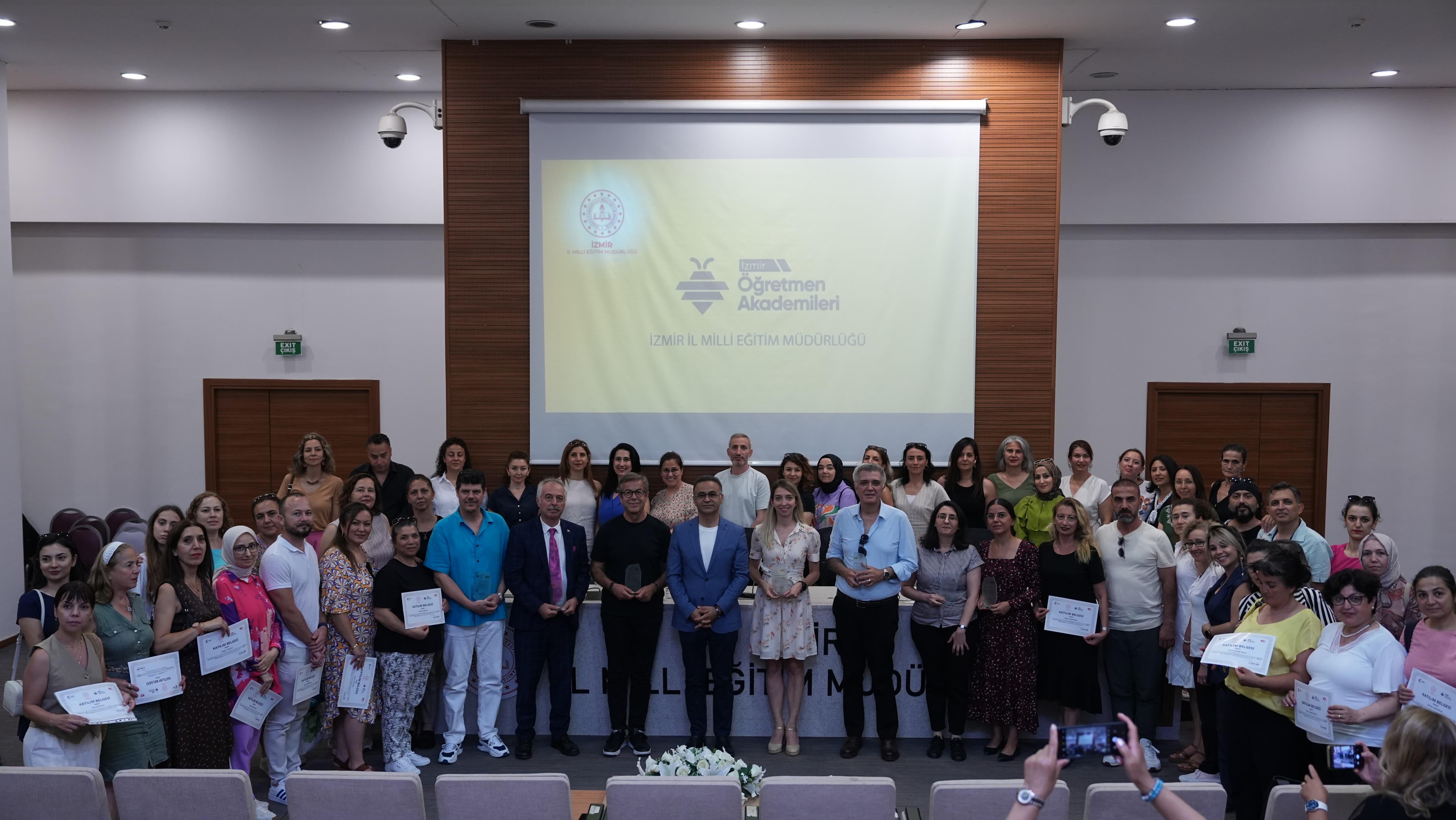 Millî Eğitim Bakanlığı öncülüğünde, İzmir İl Millî Eğitim Müdürlüğü tarafından yürütülen "İzmir Öğretmen Akademileri" 2024-2025 dönemi kapanış töreni, İzmir İl Millî Eğitim Müdürlüğü 15 Temmuz Şehitleri Konferans Salonunda gerçekleştirildi.Törene, İzmir İl Millî Eğitim Müdürü Dr. Ömer Yahşi, İl Millî Eğitim Müdür Yardımcısı İlker Erarslan, İl Millî Eğitim Şube Müdürü Aytekin Gürbulak'ın yanı sıra, Dokuz Eylül Üniversitesi Öğr. Üyesi Prof. Dr. Şerif Ali Bozkaplan, Prof. Dr. Hakan Çörekçioğlu, Dr. Öğr. Üyesi Esra Uslu, Doç. Dr. Bahar Dervişcemaloğlu, Türkiye Yazarlar Birliği İzmir Şubesi Başkanı Abbas Levent Ertekin, Murat Kas, Senem Ersin Genç, İzmir Cumhuriyet Eğitim Müzesi Müdürü Erol Keklik, eğitim yöneticileri ve öğretmenler katıldı.