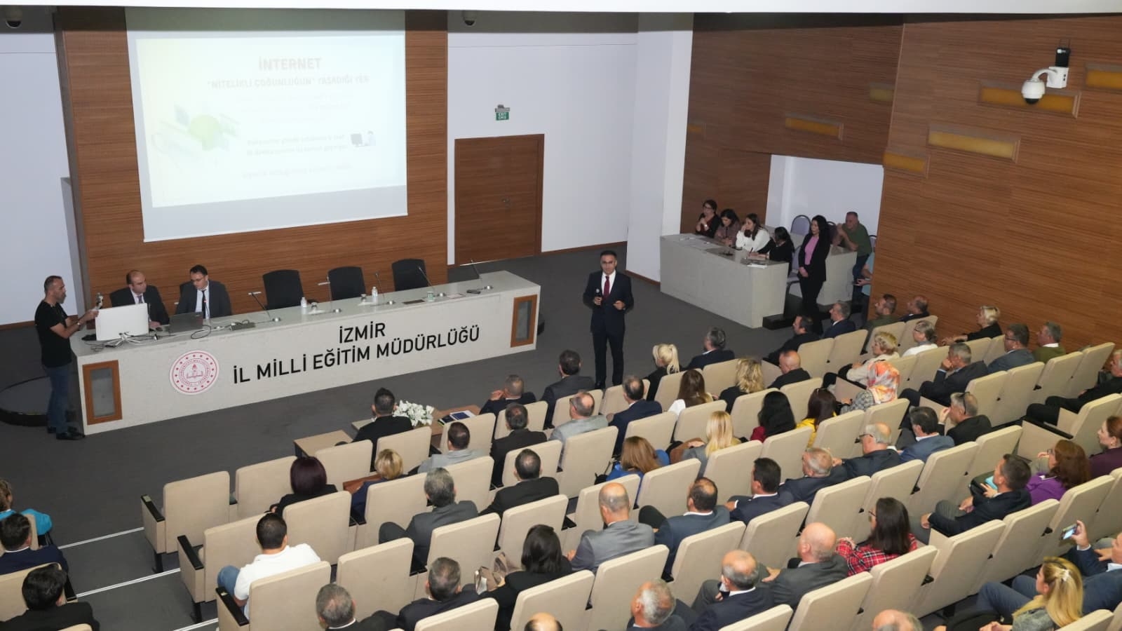 Anadolu, fen, sosyal bilimler, güzel sanatlar ve spor liselerinin okul müdürlerinin katılımıyla "2024-2025 Eğitim-Öğretim Yılı Değerlendirme Toplantısı" İzmir İl Millî Eğitim Müdürlüğü 15 Temmuz Şehitleri Konferans Salonunda gerçekleştirildi. Toplantıya; İzmir İl Millî Eğitim Müdürü Dr. Ömer Yahşi, İzmir İl Millî Eğitim Müdür Yardımcıları Hasan Vermez ve Muharrem Bayındır, İzmir İl Millî Eğitim Şube Müdürleri Nedim Sıtkı Şatır ve Ali Can Güllü, İzmir İl Millî Eğitim Müdürlüğü Bilişim Teknolojileri Koordinatörü Mustafa Murat Coşkun ile çok sayıda okul yöneticisi katıldı.